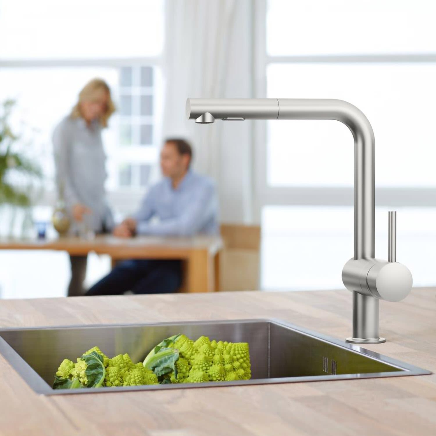 - mit herausziehbarer Spülbrause mit Umstellung: Mousseur / SpeedClean Brausestrahl
