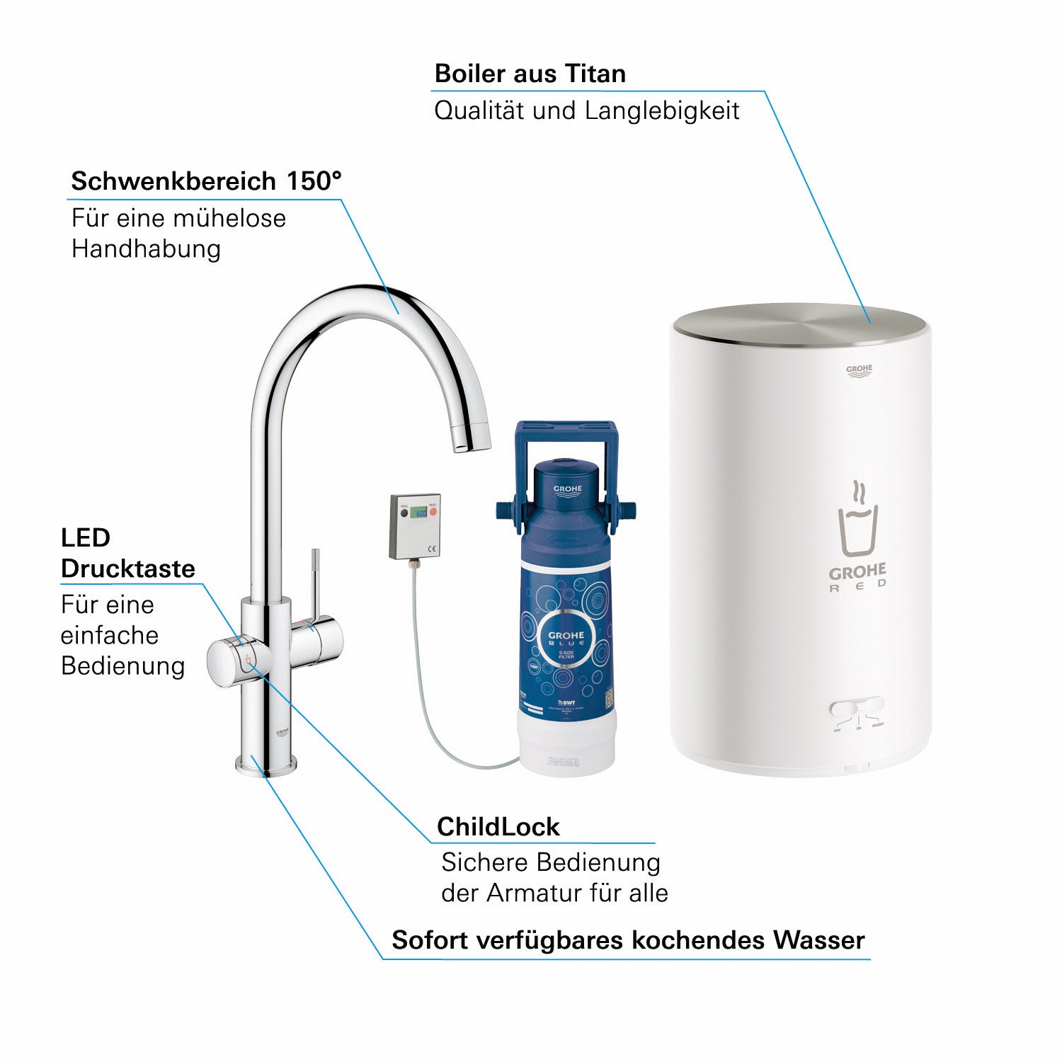 - GROHE ChildLock Drucktasten für kochendes Wasser