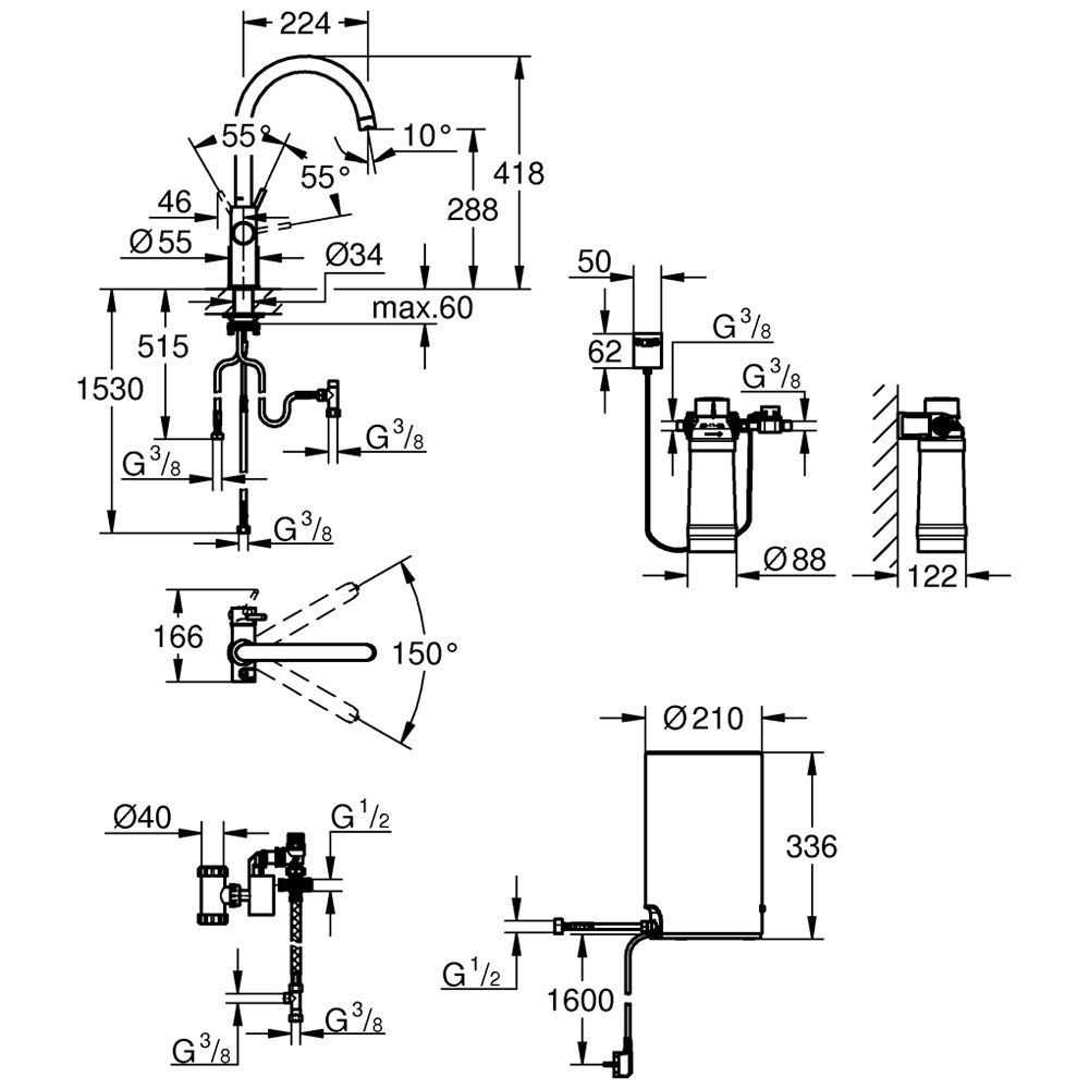 GROHE Red Duo Armatur und Boiler Größe M, Armatur mit C-Auslauf