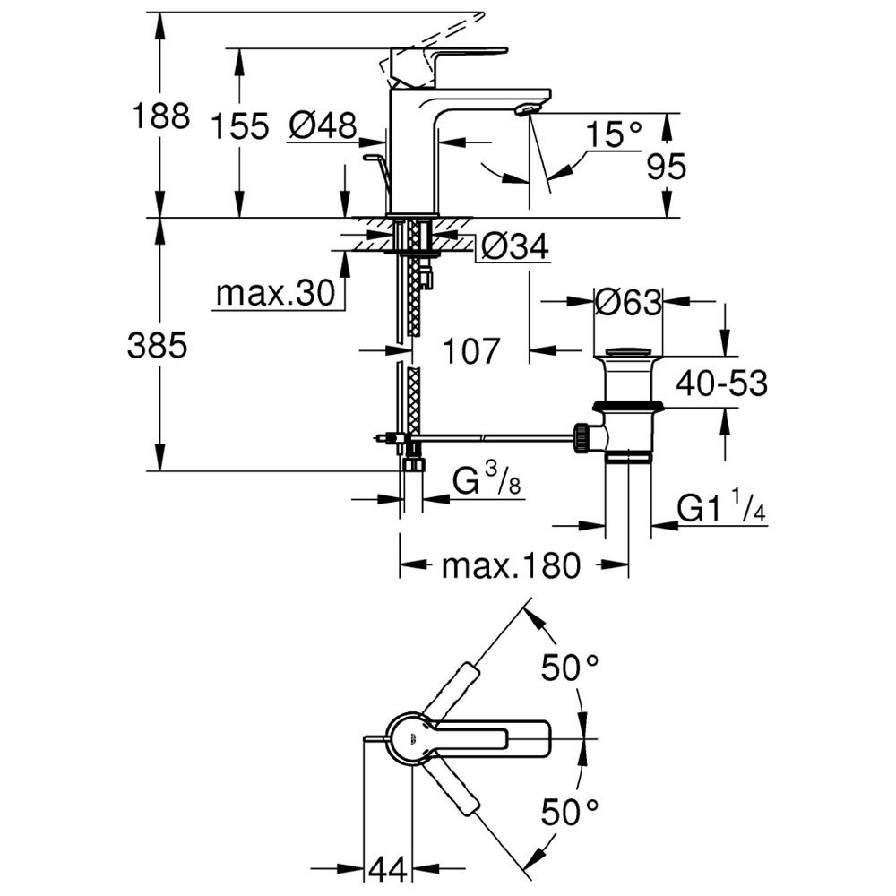 GROHE Lineare New Einhand-Waschtischbatterie XS-Size mit Zugstangen-Ablaufgarnitur