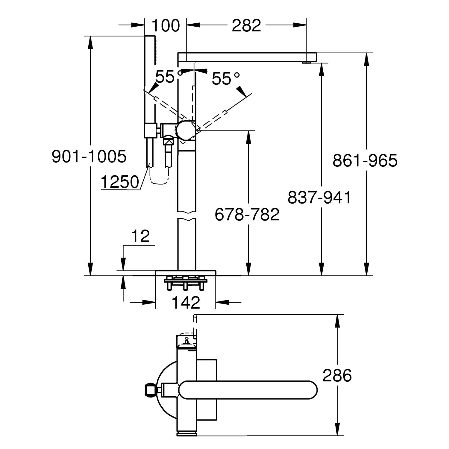 GROHE Plus Einhand-Wannenbatterie für Bodenmontage