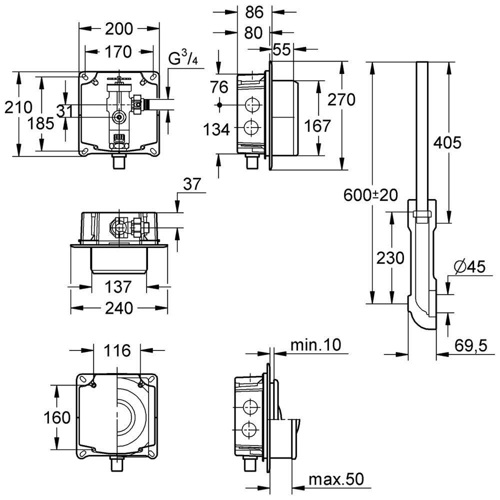 - Wandeinbaukasten mit Durchspülbogen