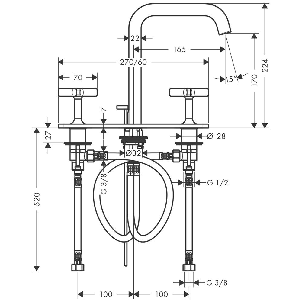 AXOR Citterio E 3-Loch Waschtischarmatur mit Montageplatte