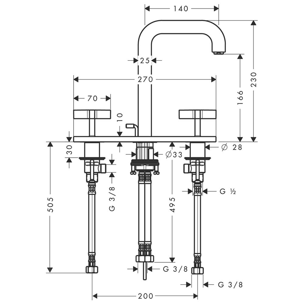 AXOR Citterio 3-Loch-Waschtischarmatur mit Kreuzgriffen Ausladung 14 cm