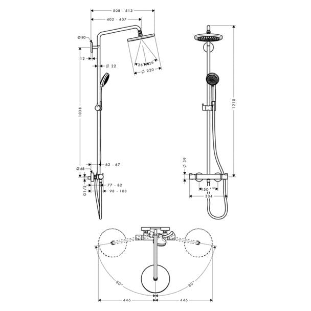 hansgrohe Croma 220 Showerpipe Einhebelmischer, Brausearm 40 cm