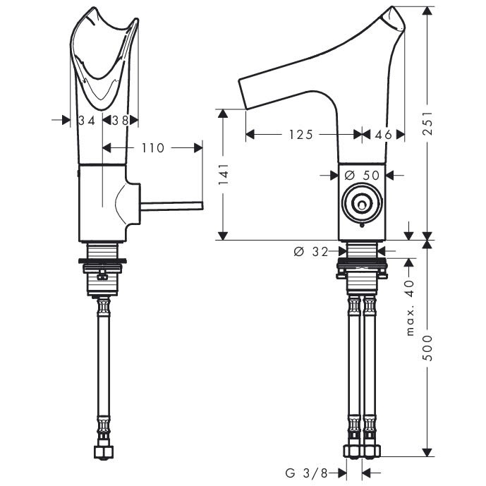 - Anschlussart: G 3/8" Anschlussschläuche