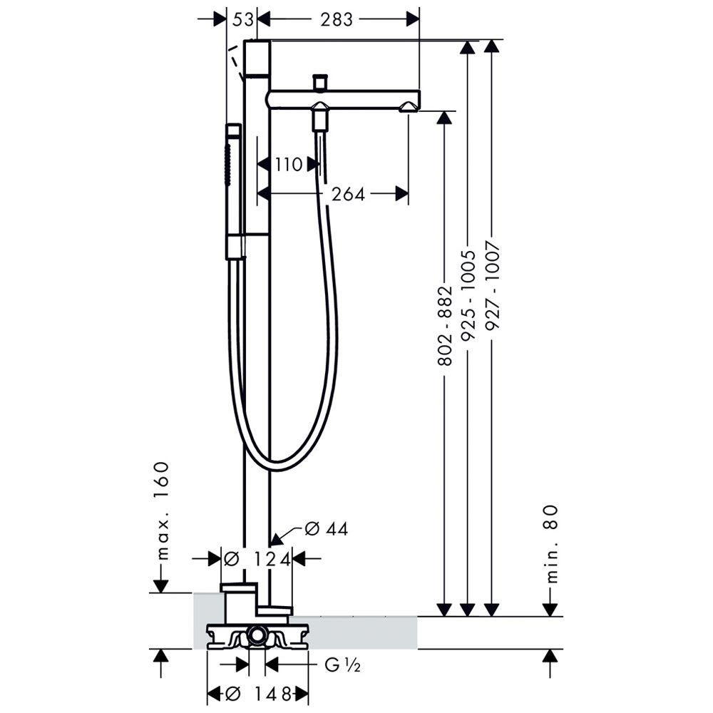 - bestehend aus: Brauseschlauch 125 cm ( Art.Nr. 28282000) und AXOR Starck 2jet Stabhandbrause ( Art.Nr. 28532000)