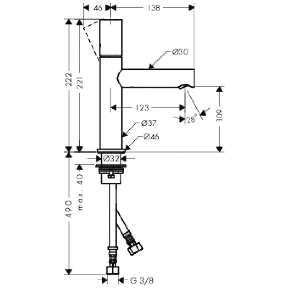 AXOR Uno Einhebel-Waschtischmischer 110 mit Zerogriff und ohne Ablaufgarnitur