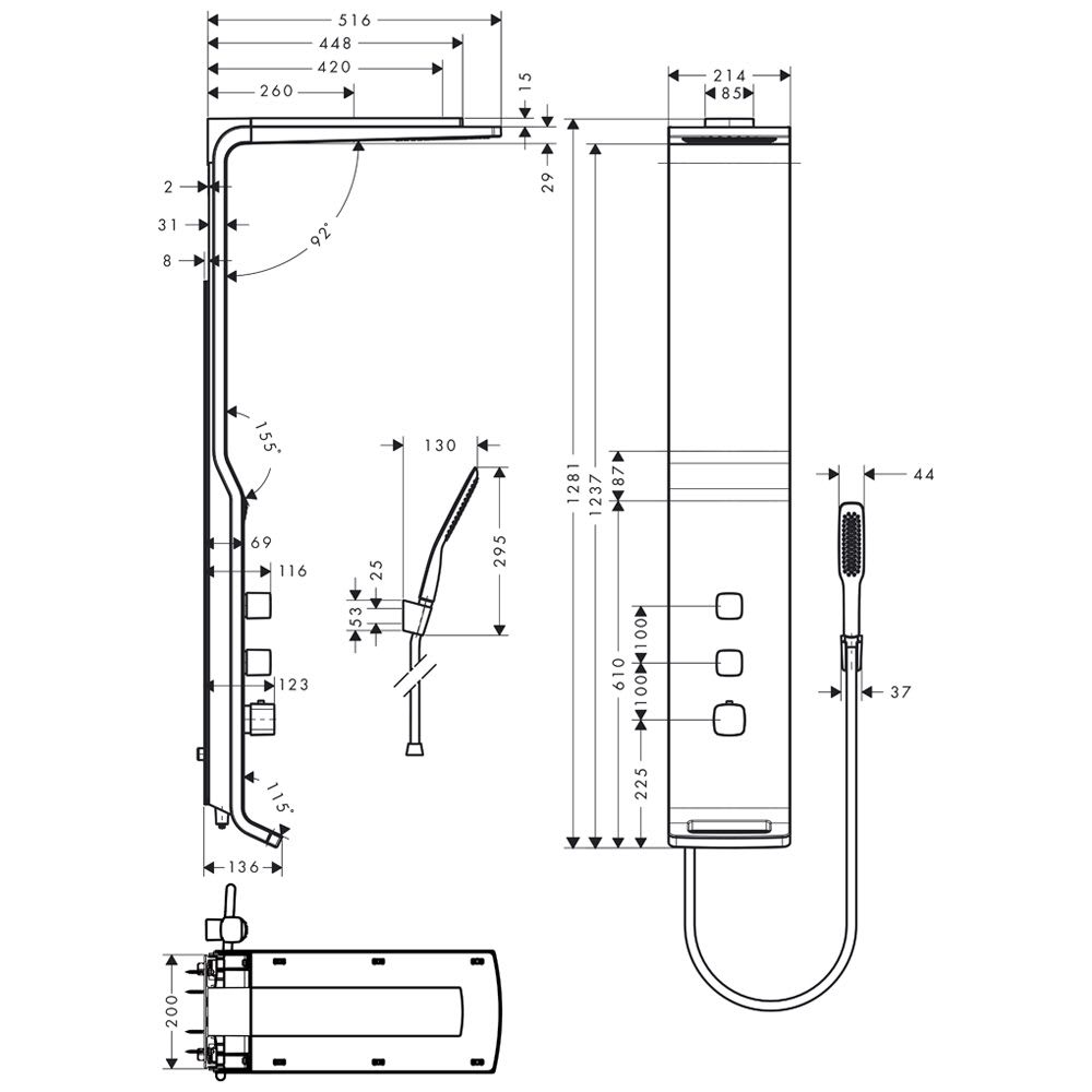 - Besteht aus: Duschpaneel, Kopfbrause, Stabhandbrause, Brauseschlauch, Brausehalter
