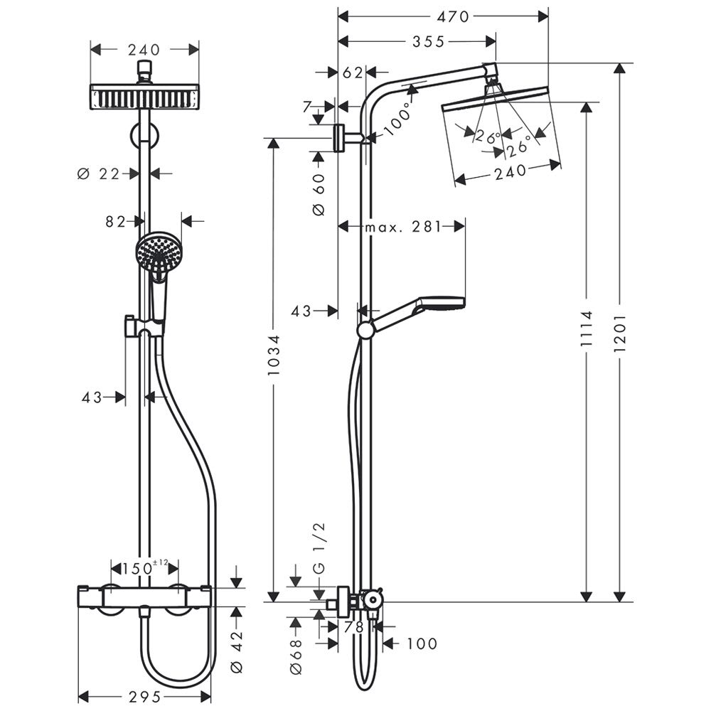 - Brausekopfgröße der Kopfbrause:: 240 x 240 mm