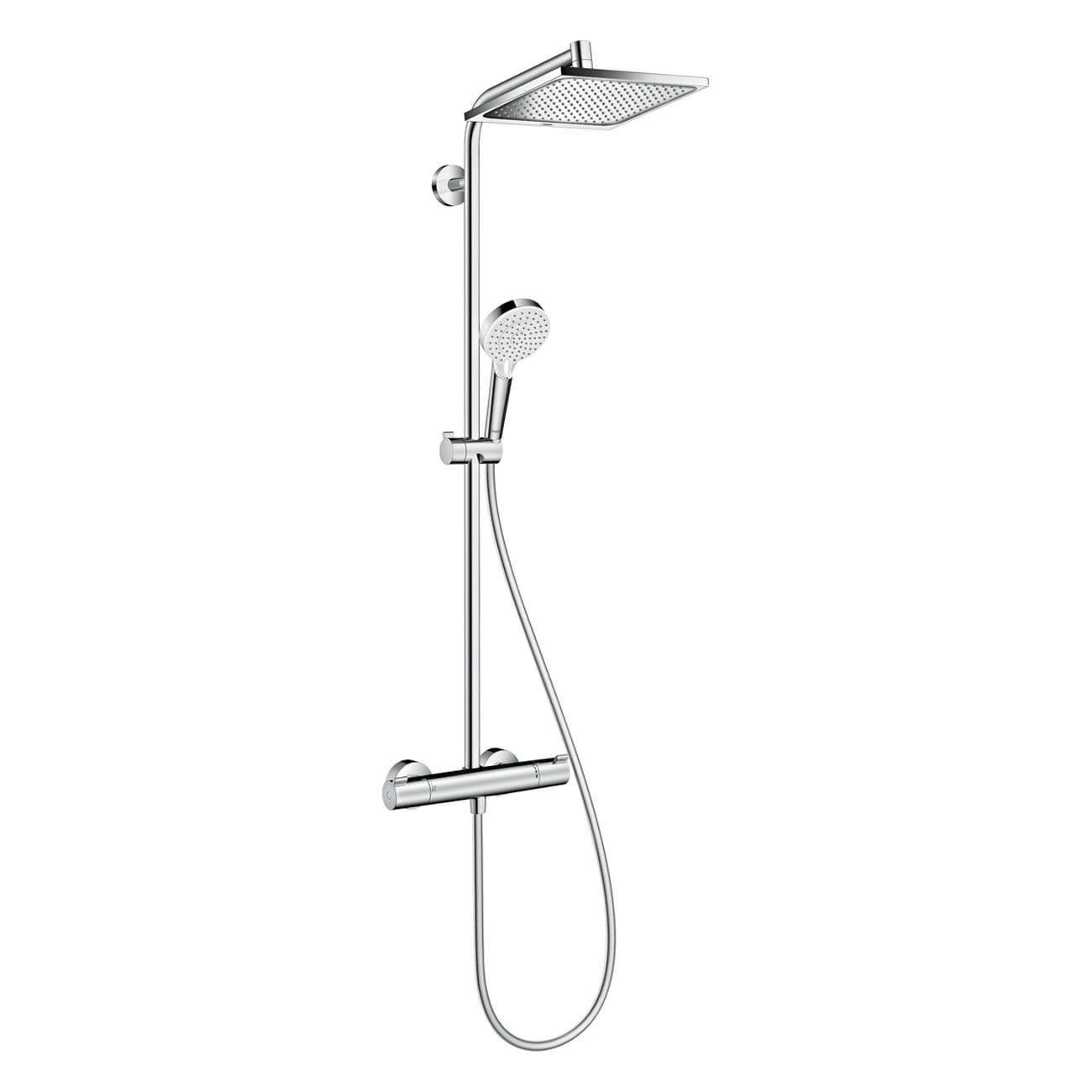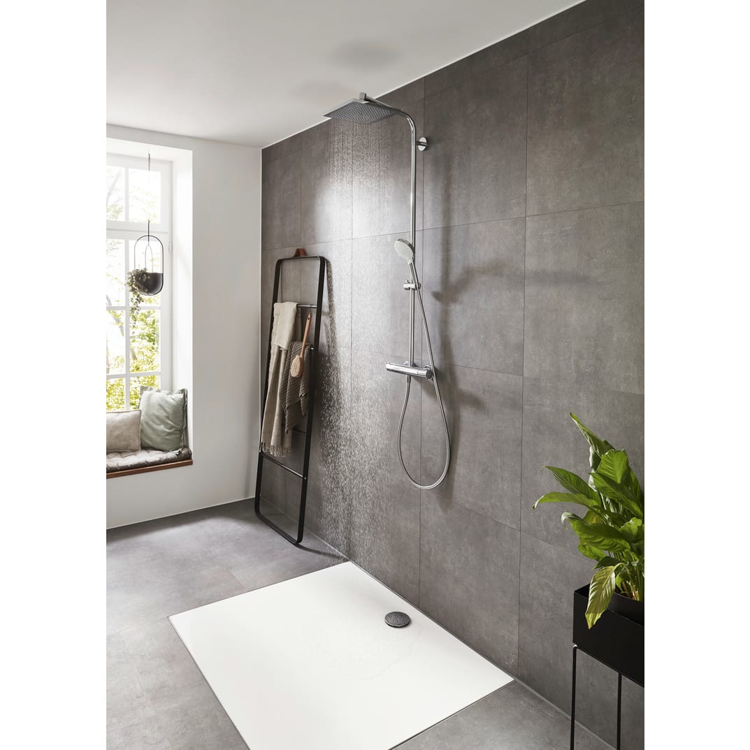 - Lieferumfang: Showerpipe mit Thermostat, Rosetten, S-Anschlüsse, Befestigungsmaterial, Montageanleitung