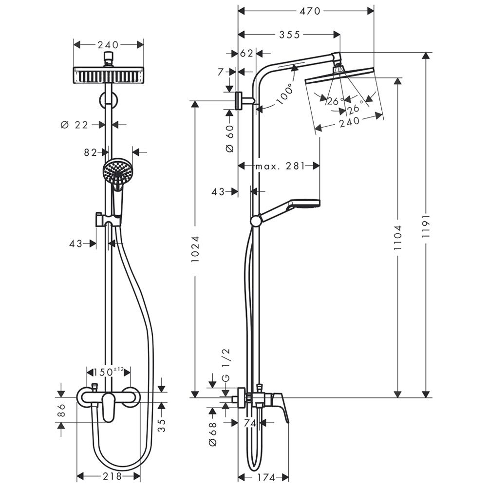 hansgrohe Crometta E 240 1jet Showerpipe mit Einhebelmischer