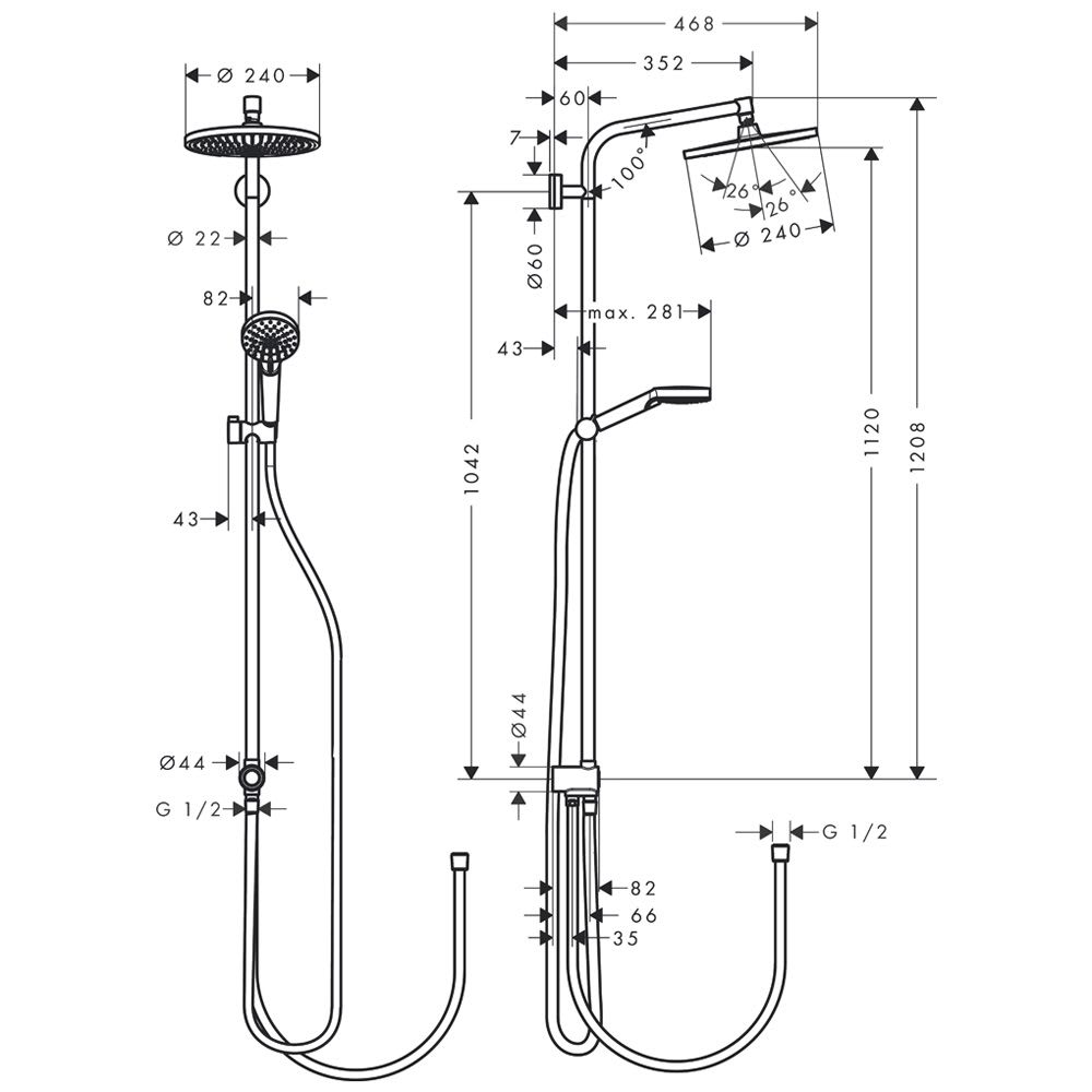 - Brausearmlänge: 350 mm