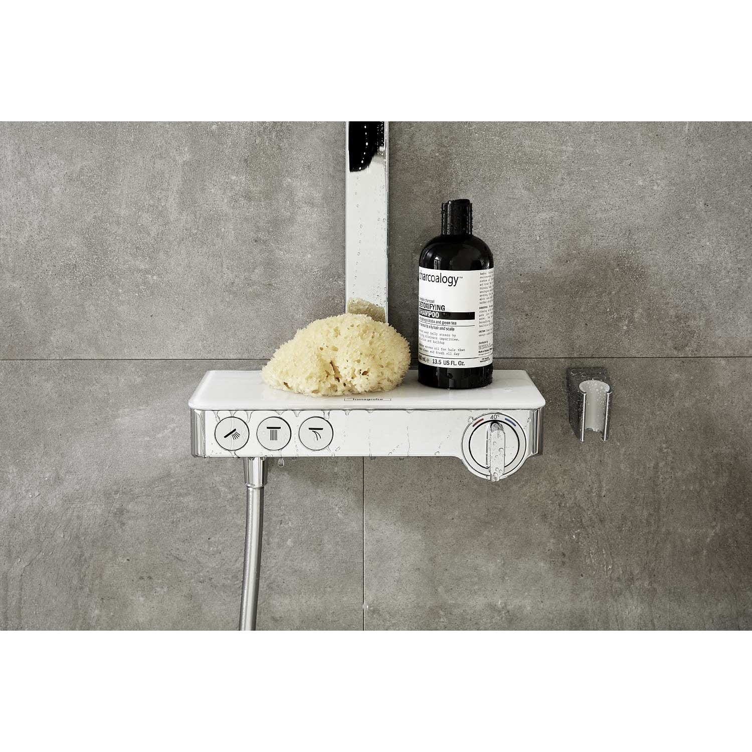 - Besteht aus: Kopfbrause, Handbrause, Brausethermostat, Brauseschlauch, Brausehalter