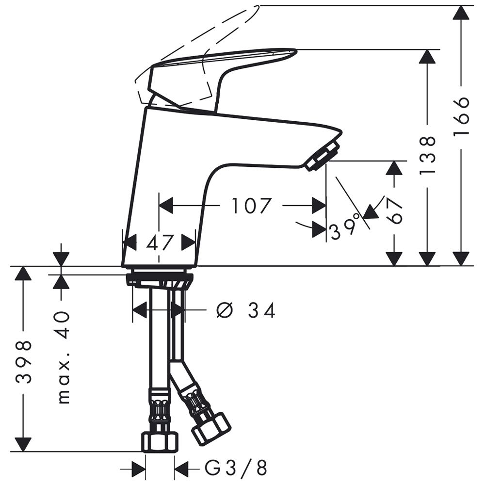 - einfach installiert: die Armatur wird über flexible Schläuche (G 3/8") mit den Wasseranschlüssen verbunden