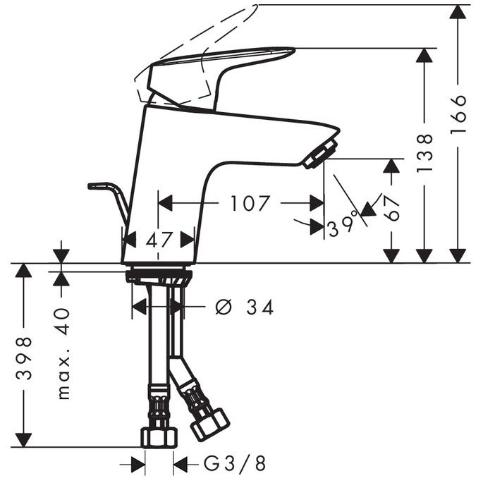 - einfach installiert: die Armatur wird über flexible Schläuche (G 3/8") mit den Wasseranschlüssen verbunden