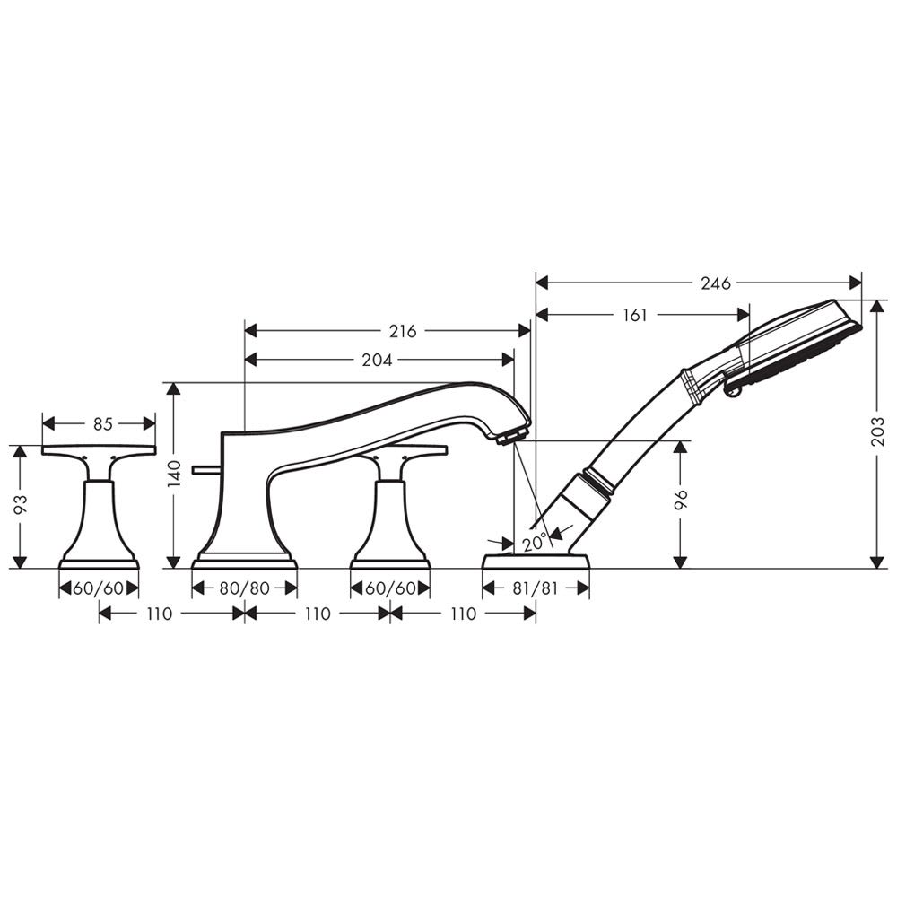 hansgrohe Metropol Classic 4-Loch Wannenrandarmatur mit Kreuzgriff