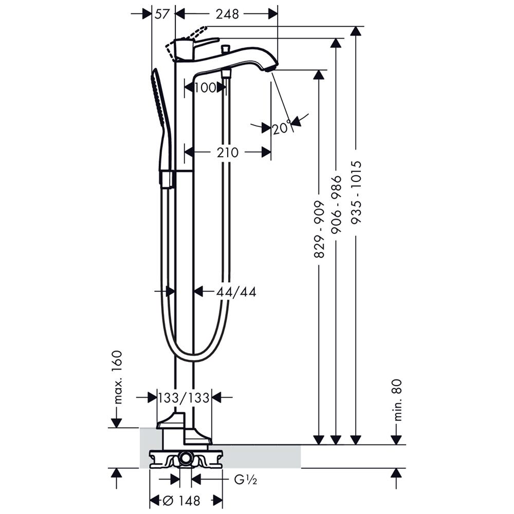 - Besteht aus: Einhebel-Wannenmischer bodenstehend, Stabhandbrause, Brauseschlauch