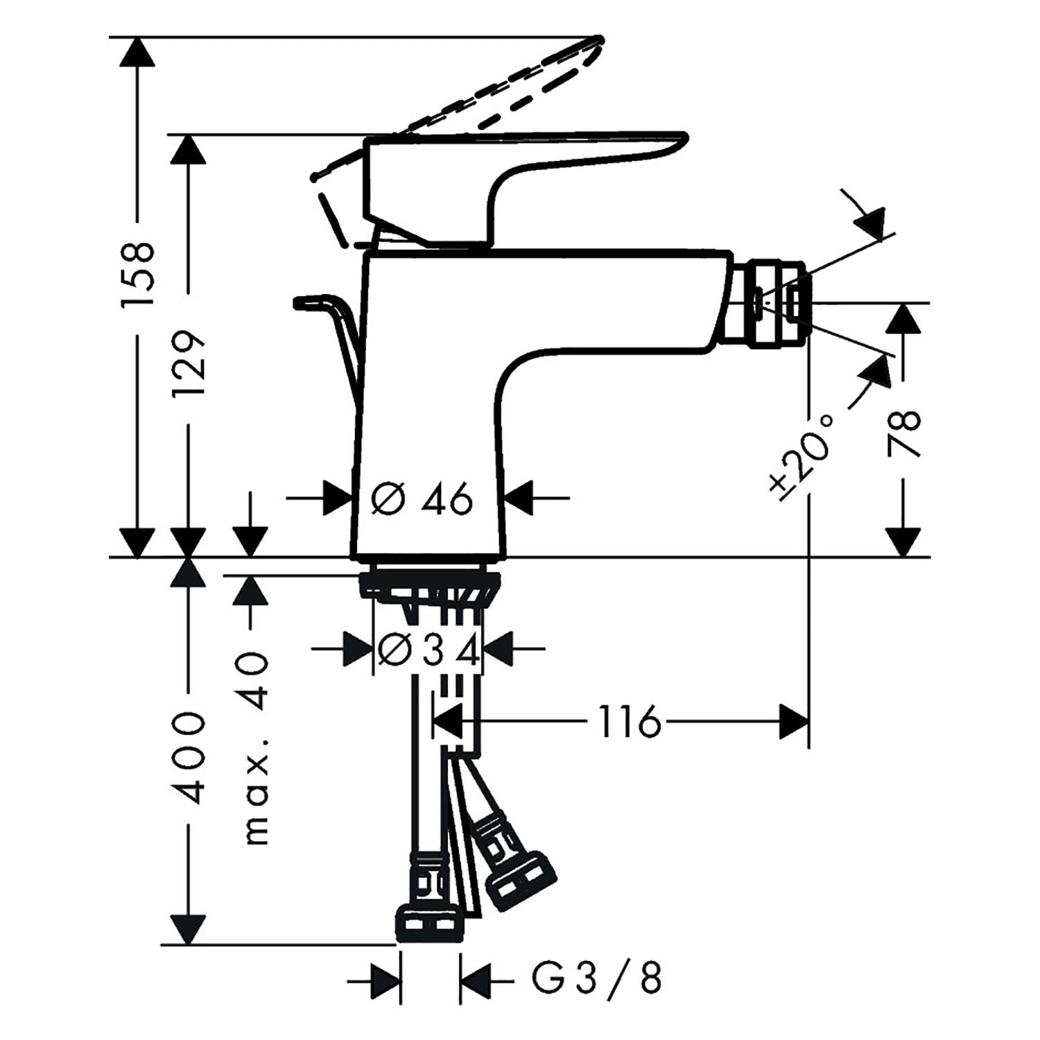 - Besteht aus: Einhebel-Bidetmischer, Ablaufgarnitur