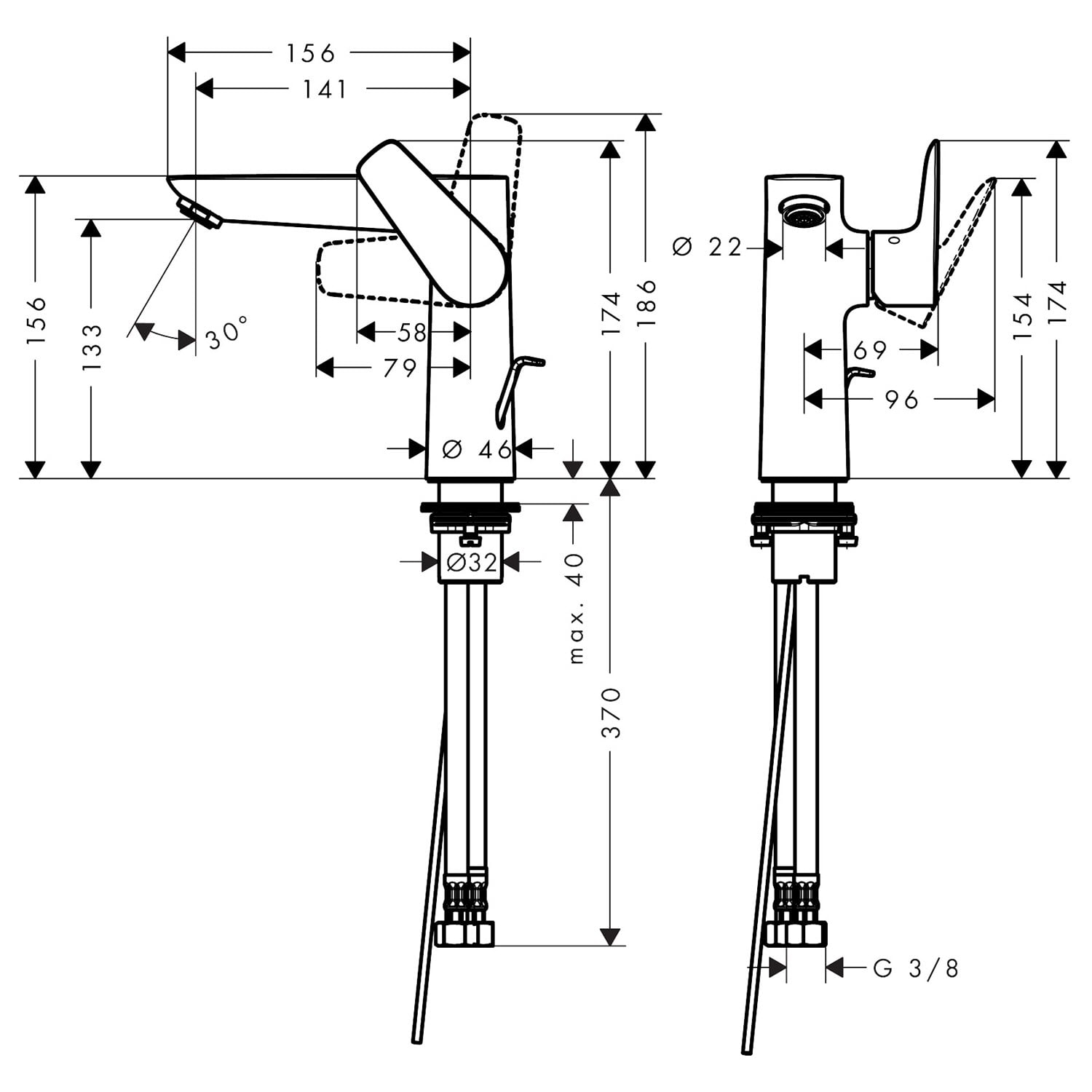 - Anschlussart: G ⅜ Anschlussschläuche