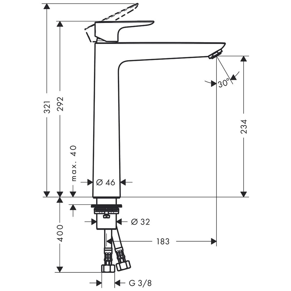 - Anschlussart: G ⅜ Anschlussschläuche