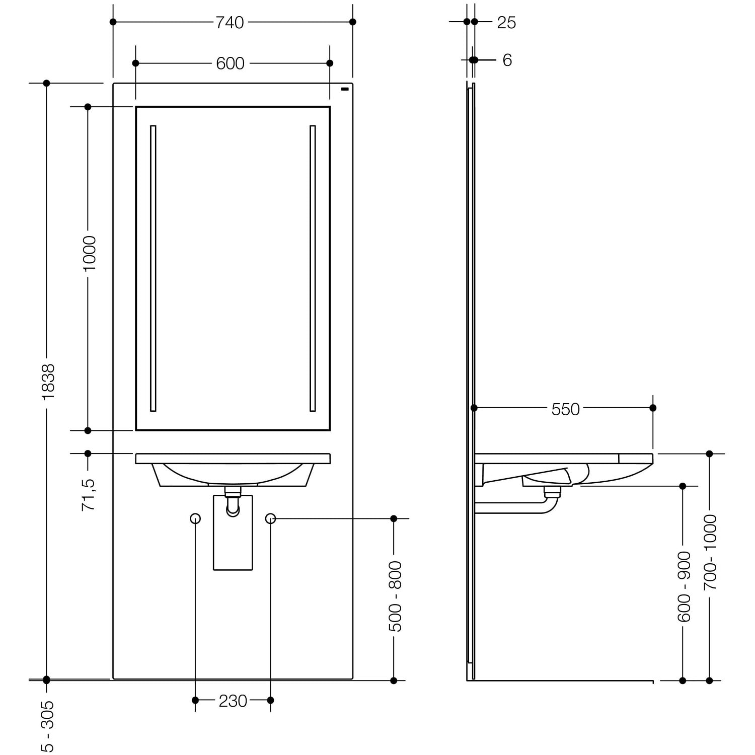 - für das elektrisch um 30 cm höhenverstell. Vorwandelement Waschtisch S50.01.01000 (separat bestellen)