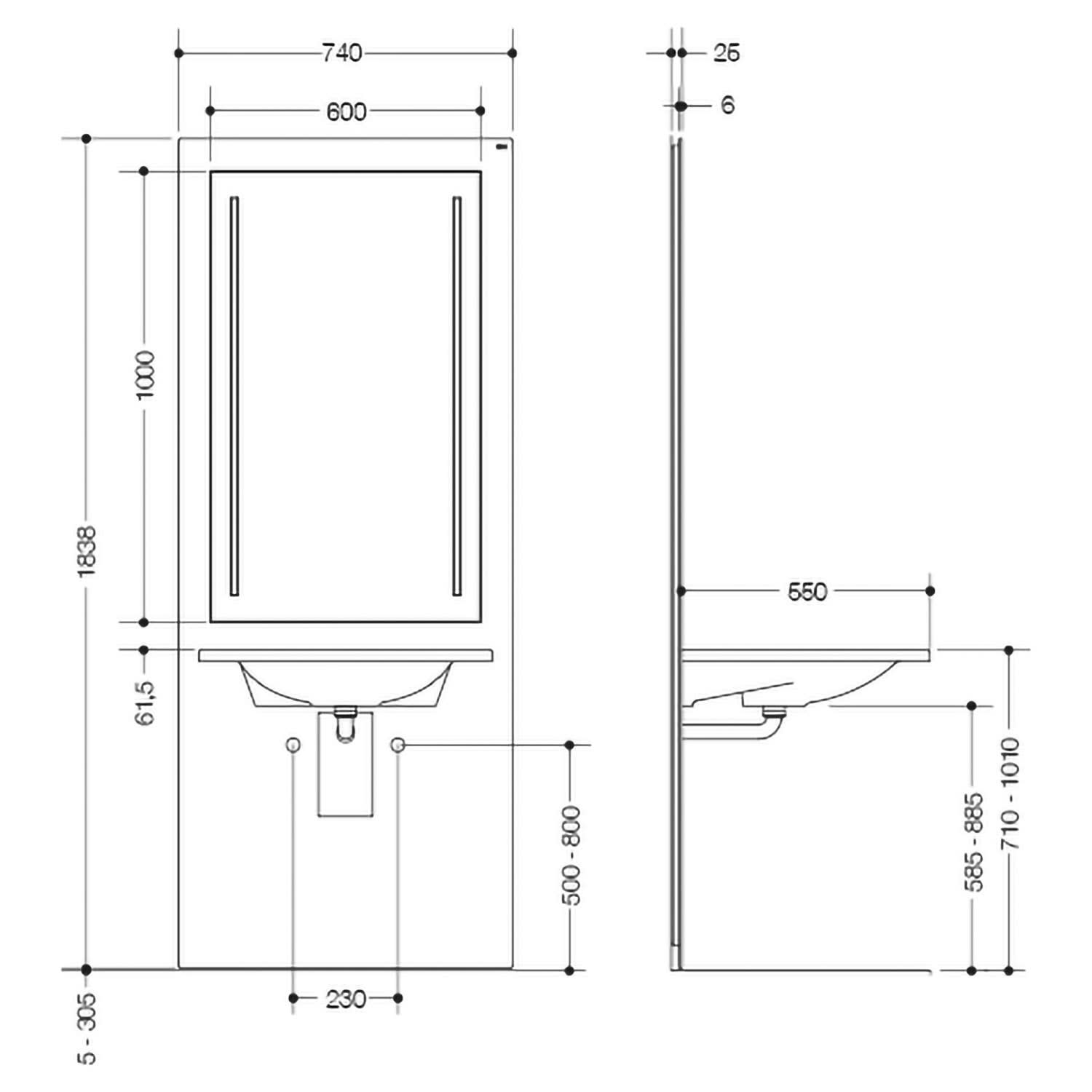 - für das elektrisch um 30 cm höhenverstell. Vorwandelement Waschtisch S50.01.01000 (separat bestellen)