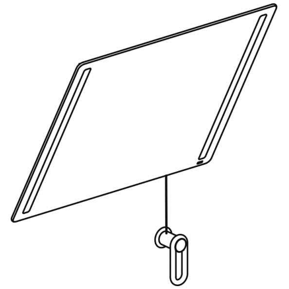 - der Spiegel kann mit Kurbel und Seilzug um max. 28° geneigt werden und ist daher im Stehen und im Sitzen zu benutzen