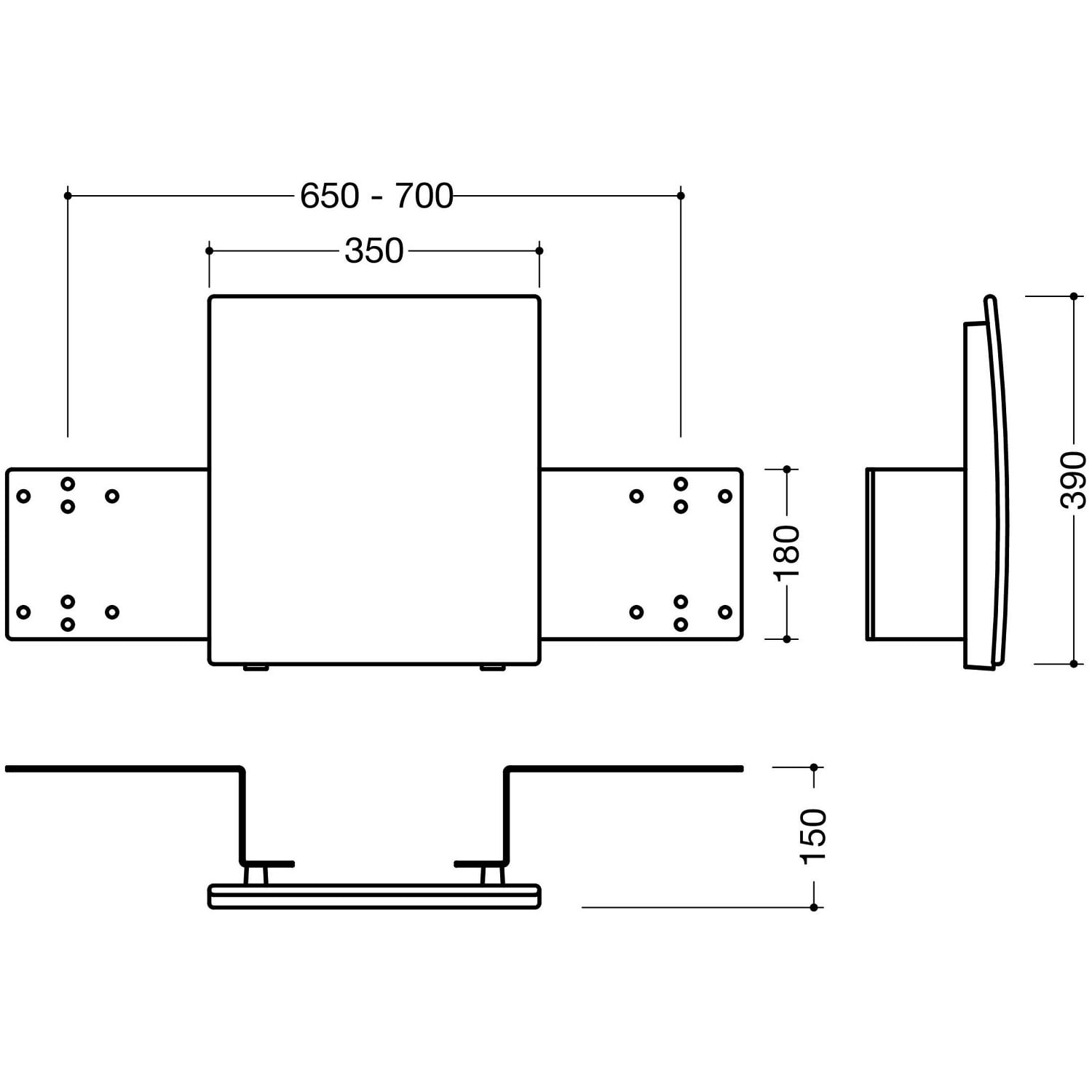 - Lehne mit beidseitig angebrachten Befestigungswinkeln
