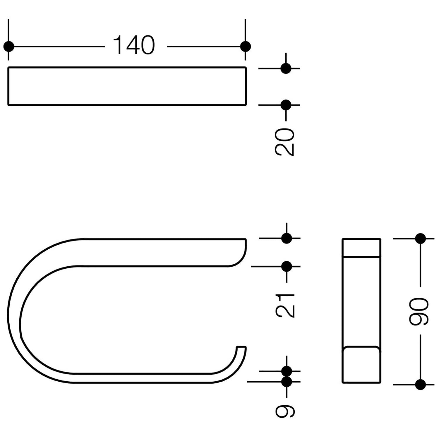 - U-förmiger, nach rechts geöffneter WC-Papierhalter