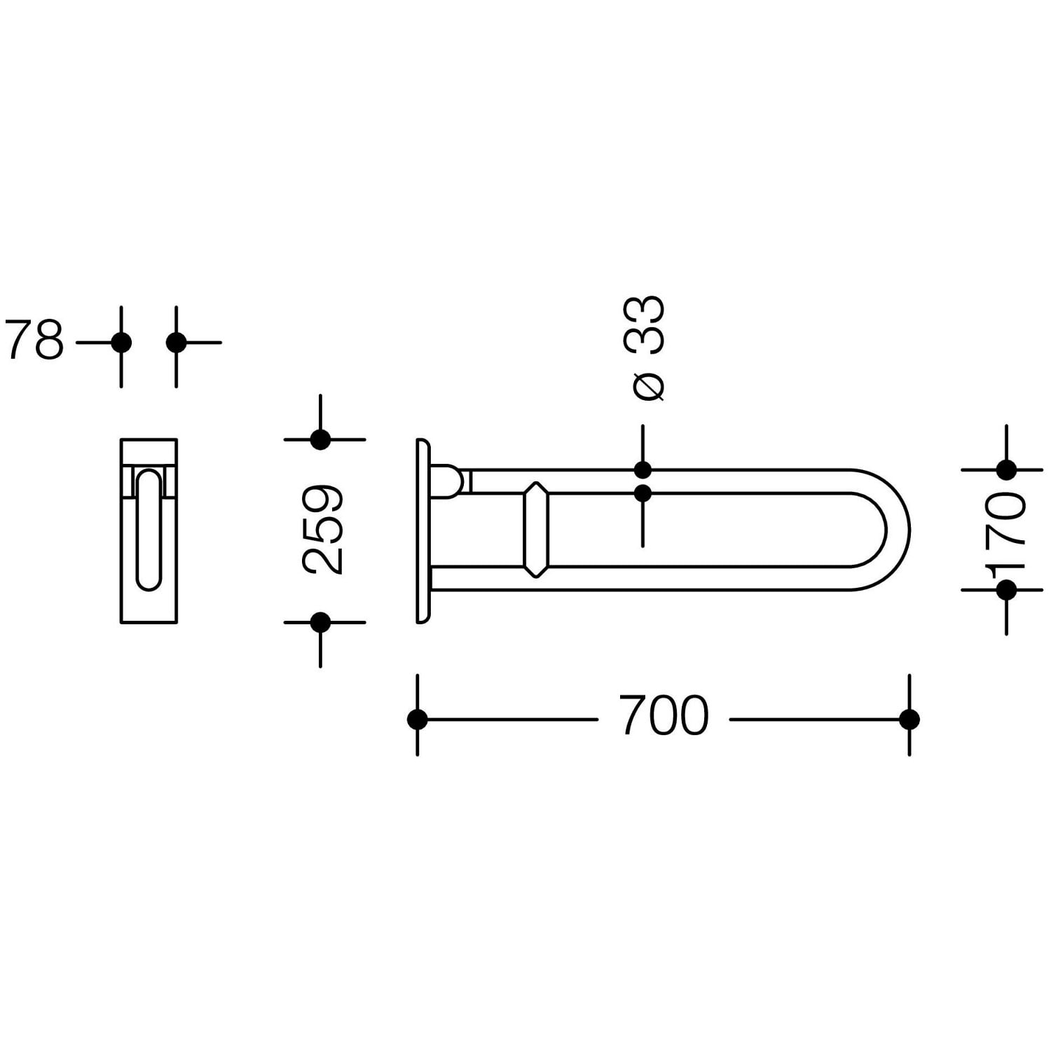 - verdecktes, korrosionsfreies und geprüftes HEWI Befestigungsmaterial für unterschiedliche Wandaufbauten