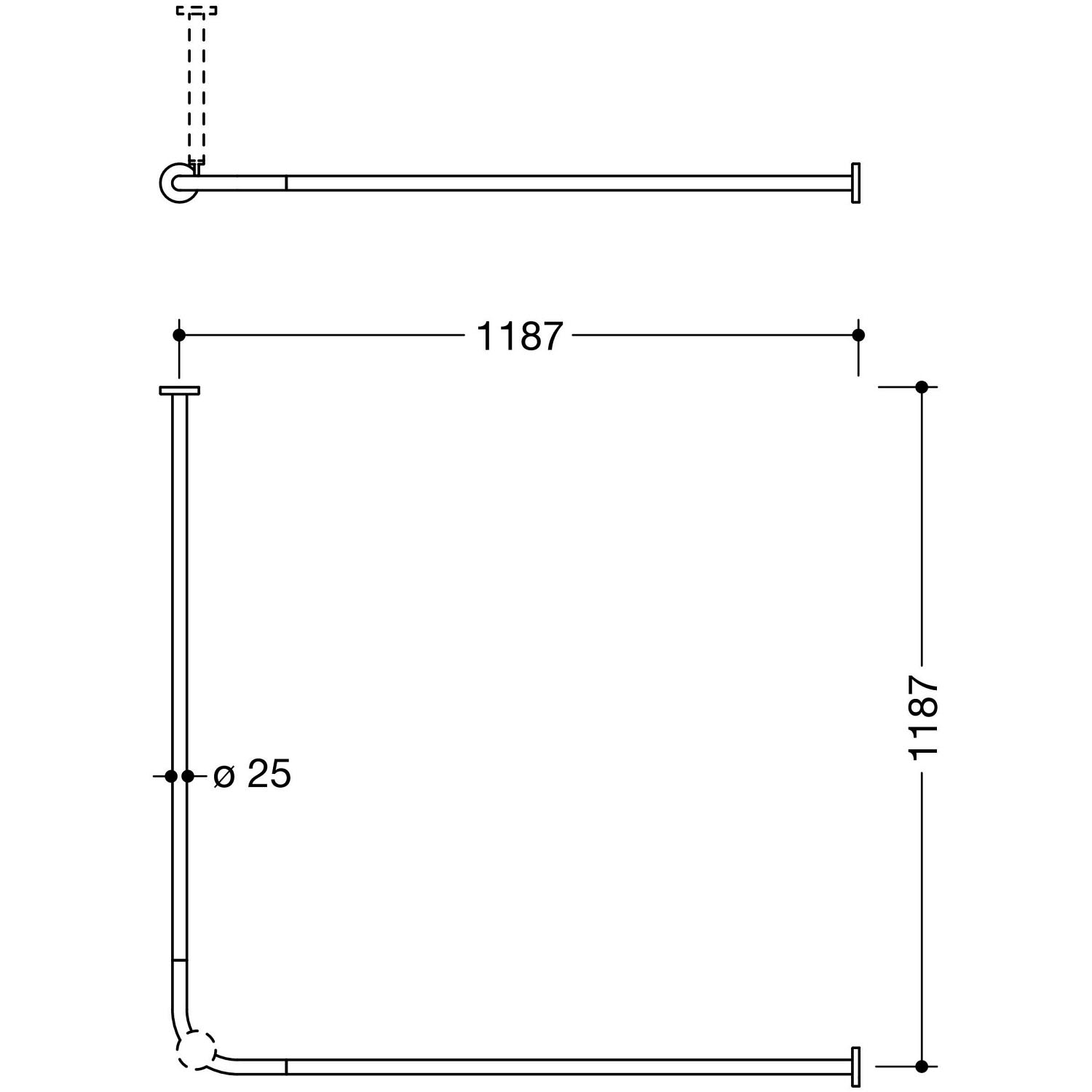 HEWI System 900 Vorhangstange für Duschwanne 120 x 120 cm