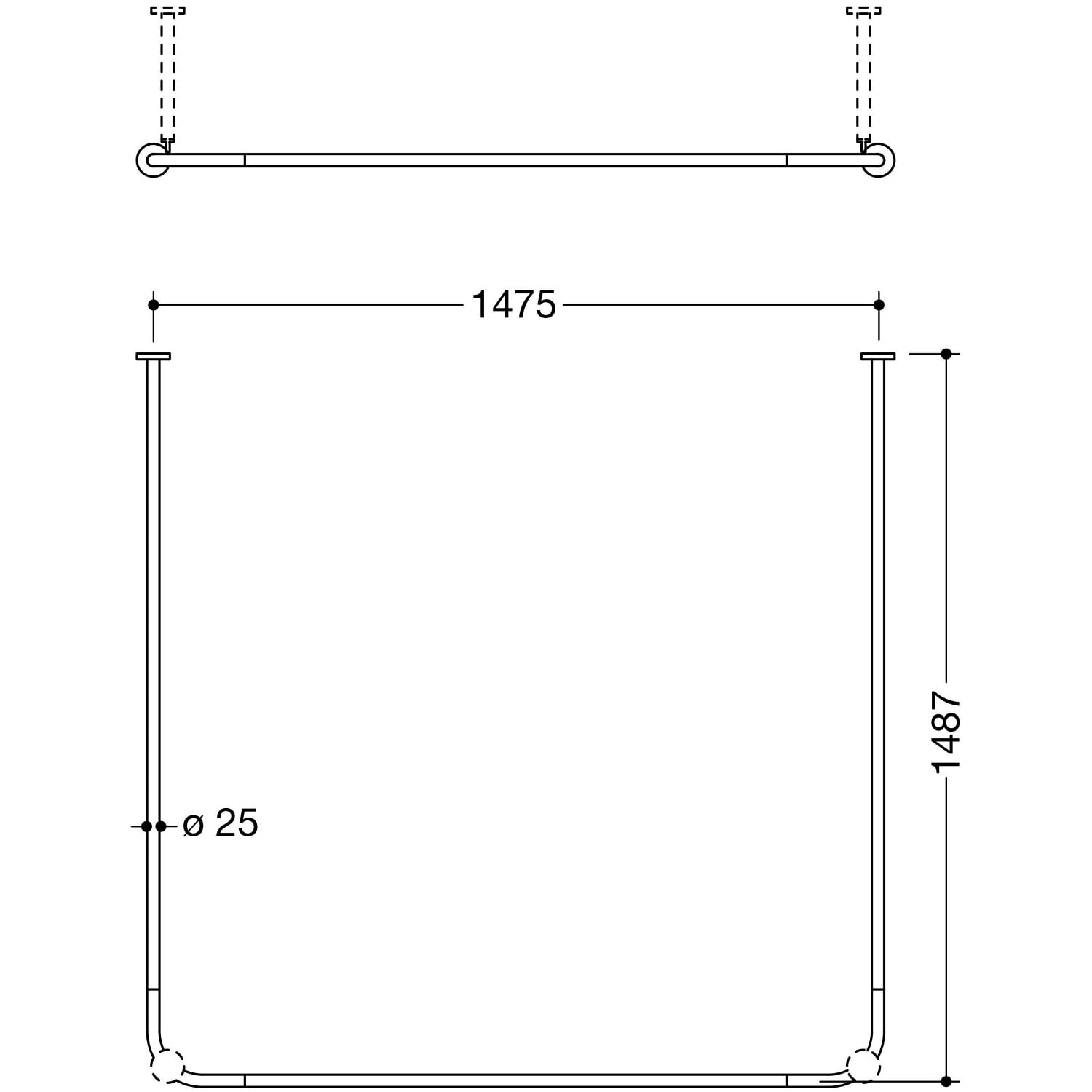 HEWI System 900 Vorhangstange U-förmig, für Duschwanne 150 x 150 cm