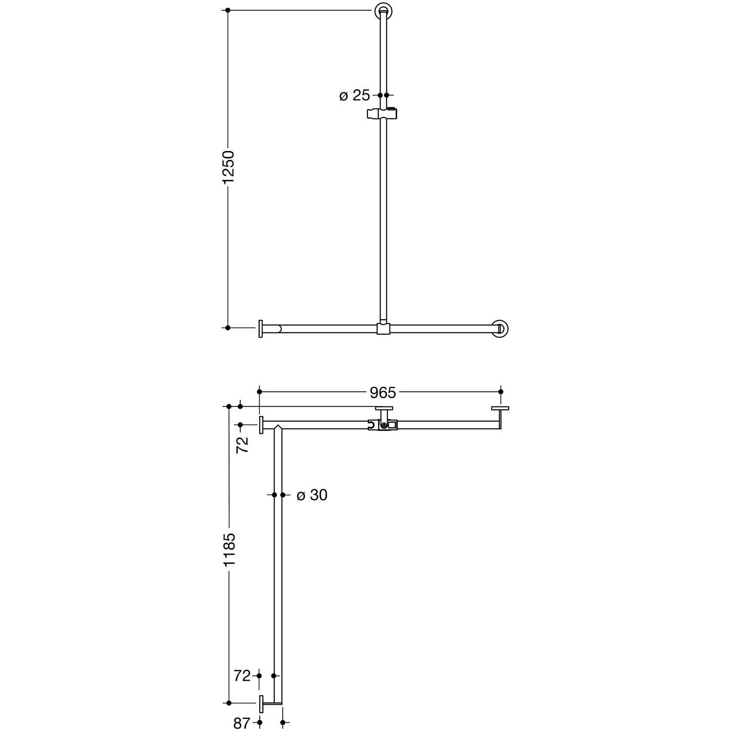 - senkrecht und waagerecht angeordnete Stangen mit Befestigungsrosetten und Brausehalter