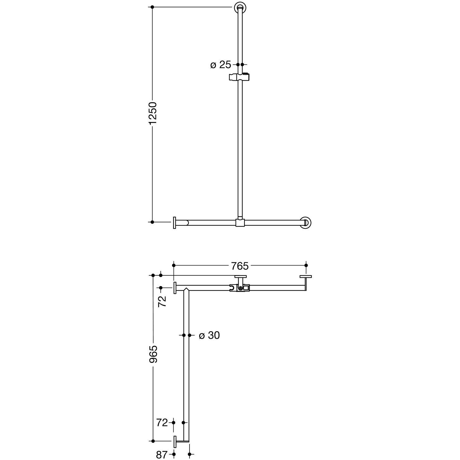 - senkrecht und waagerecht angeordnete Stangen mit Befestigungsrosetten und Brausehalter