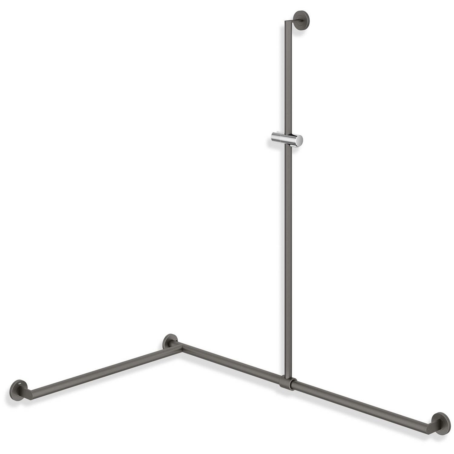- senkrecht und waagerecht angeordnete Stangen mit Befestigungsrosetten und Brausehalter