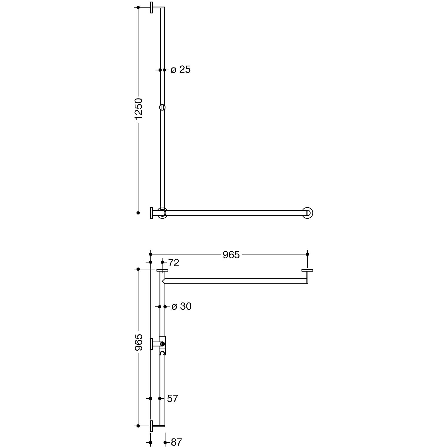 HEWI System 900 Duschhandlauf, 125 x 96,5 x 8,7 cm, Ausführung links