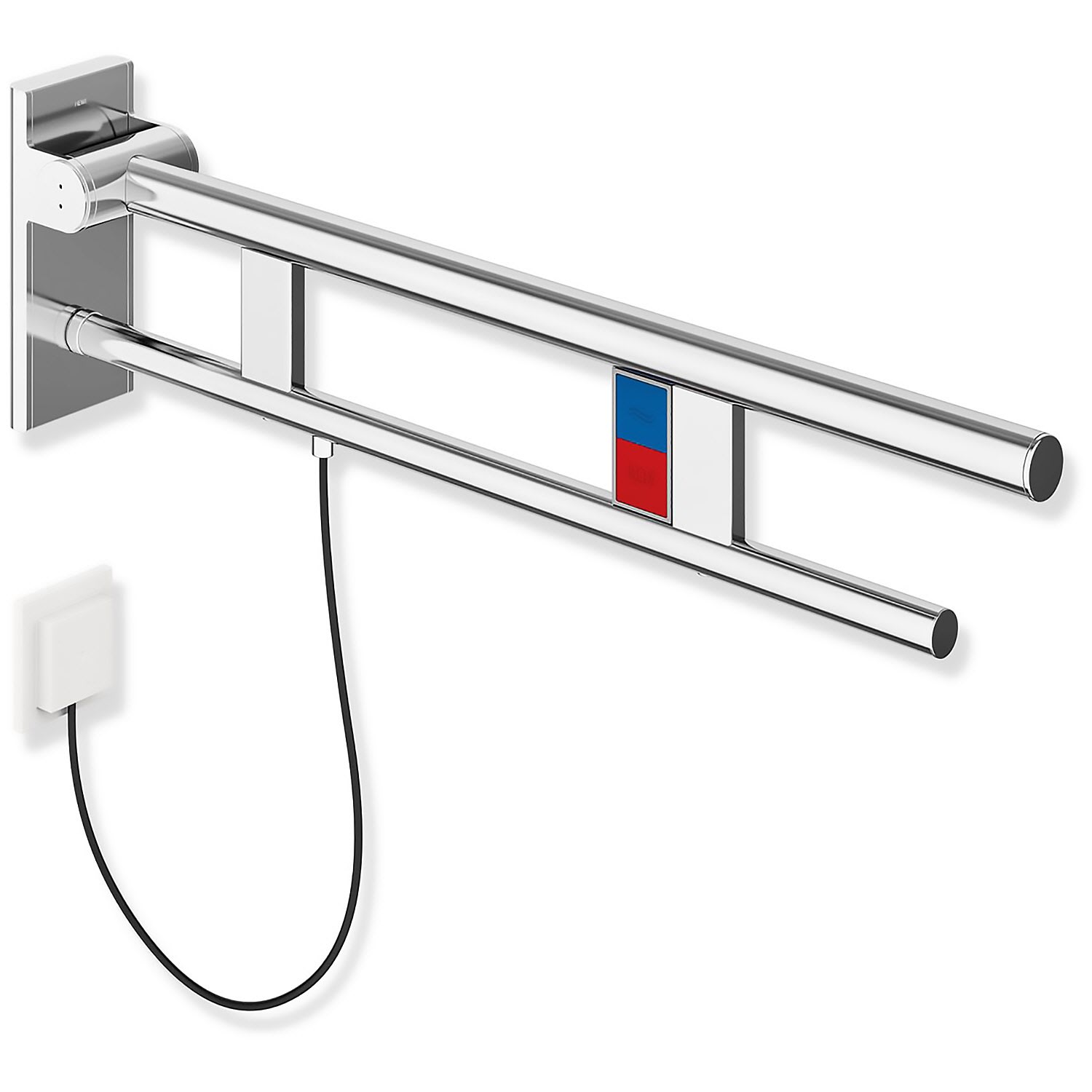 HEWI System 900 Stützklappgriff Duo Design A mit 2 Funktionstasten (E-Ausführung), links 85 cm