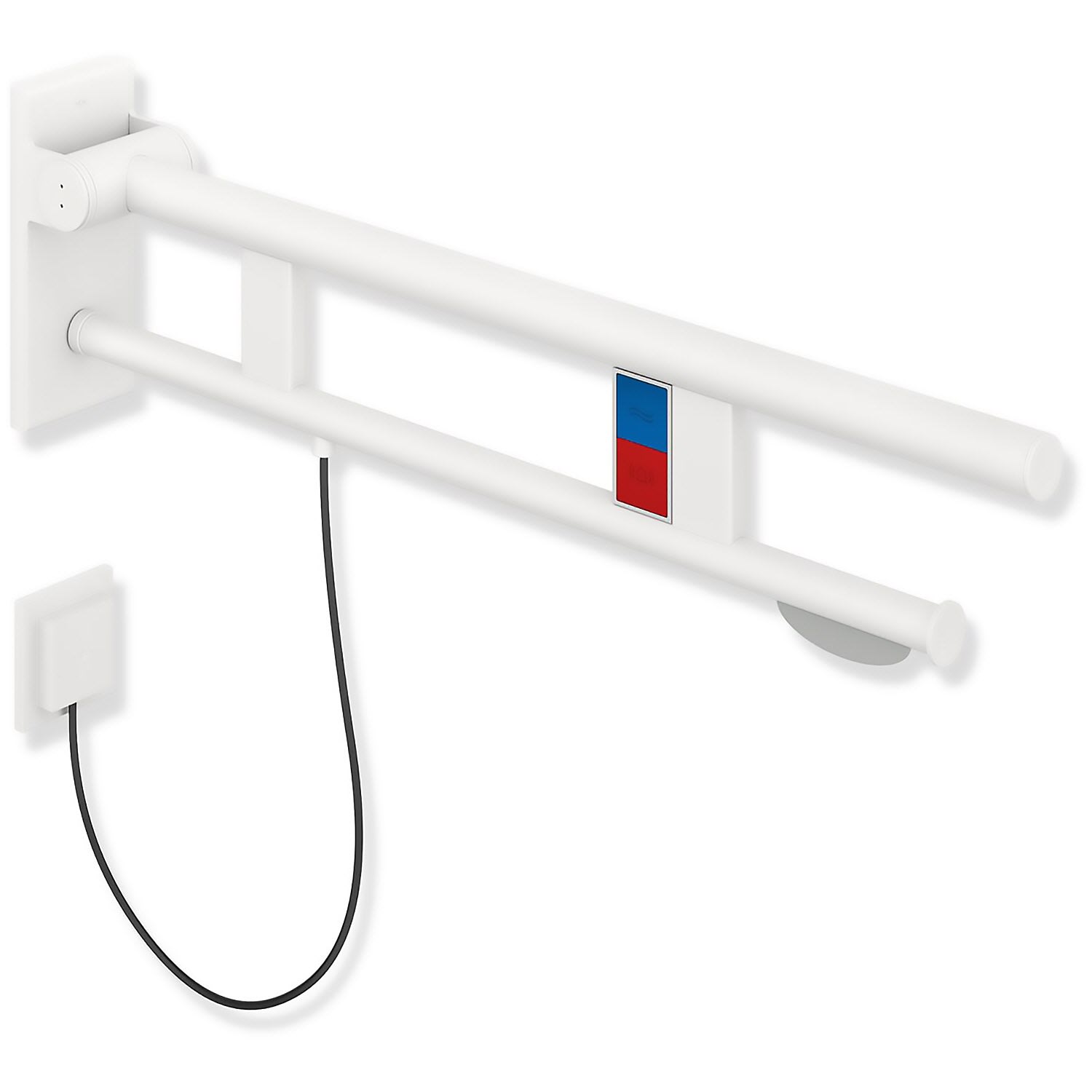 HEWI System 900 Stützklappgriff Duo Design A mit 2 Funktionstasten (E-Ausfhrg.)+ WC-Papierh., li. 70 cm