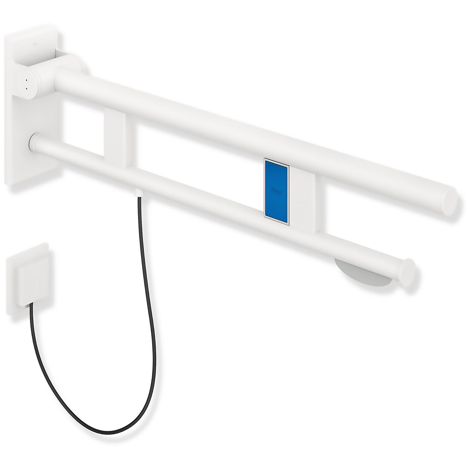 HEWI System 900 Stützklappgriff Duo Design A mit WC-Papierhalter und Spülauslösung (E-Ausfhrg.), li. 70 cm