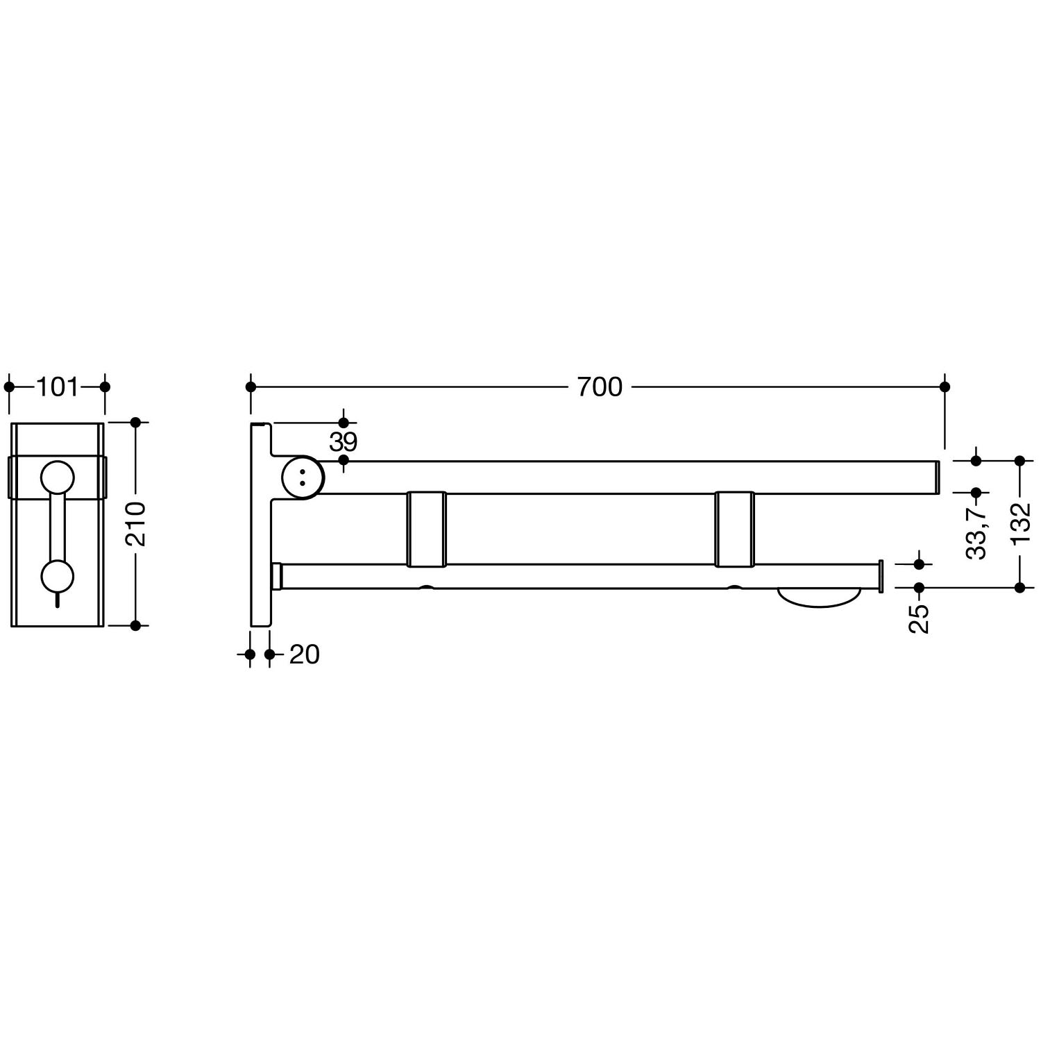 HEWI System 900 Stützklappgriff Duo Design A mit WC-Papierhalter, 70 cm