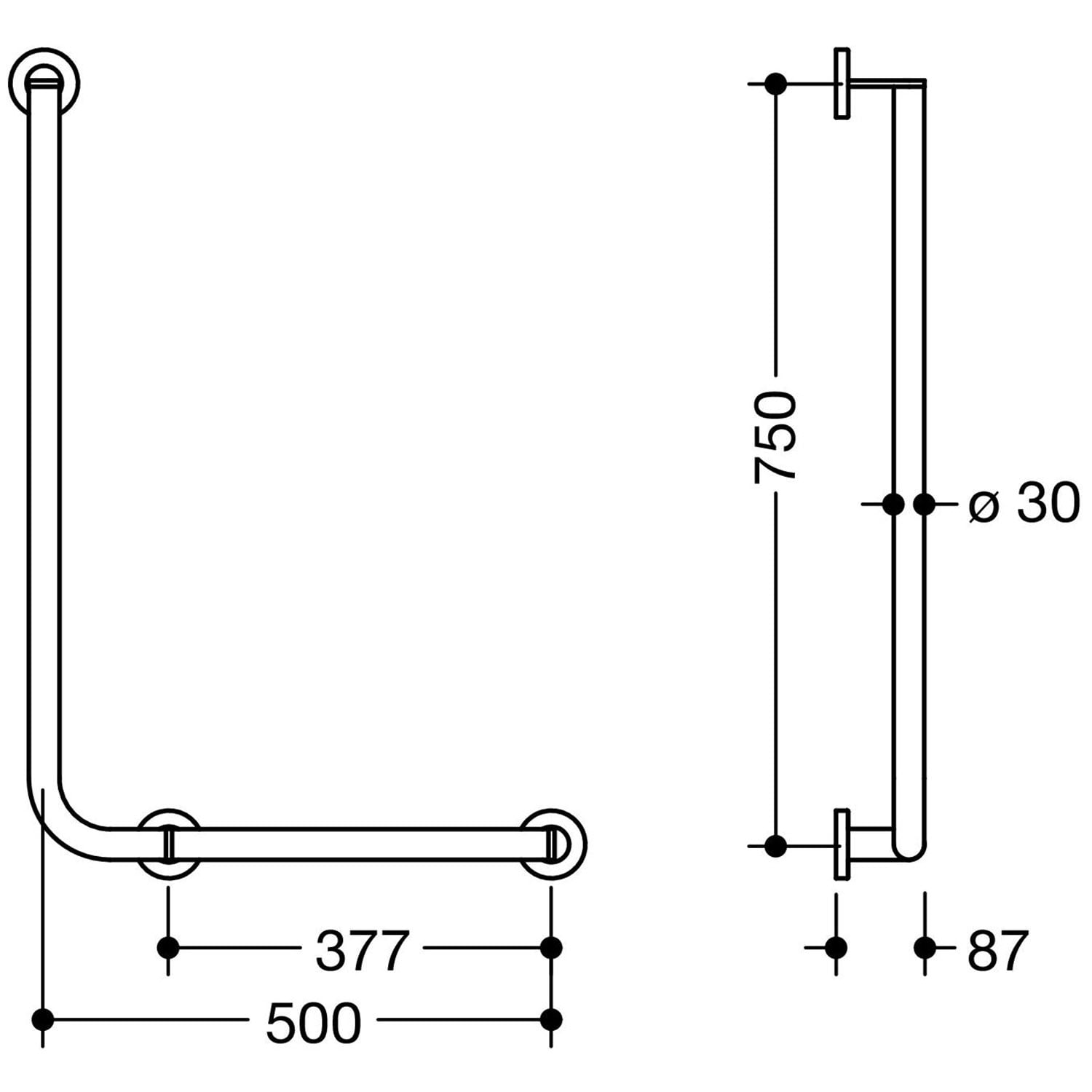 HEWI System 900 Winkelgriff 75 cm, rechts