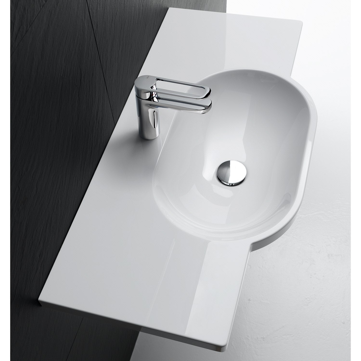 - mit großzügiger Ablagefläche und flachem ovalem Becken