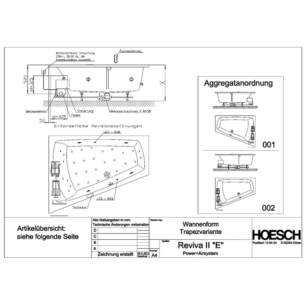 Hoesch Largo Eck-Whirlpool Reviva II 4 Whirl 21 Air 8 Rücken 2 Fußdüsen+ Farblichtwechsler linke Ausführung