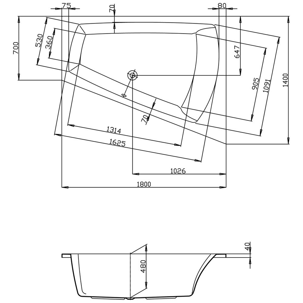 Hoesch Largo Eck-Badewanne 180 x 140 cm rechte Ausführung