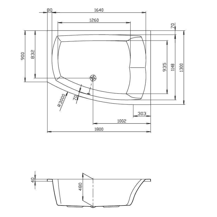 L: 180 B: 130 / 90 H: 48 cm