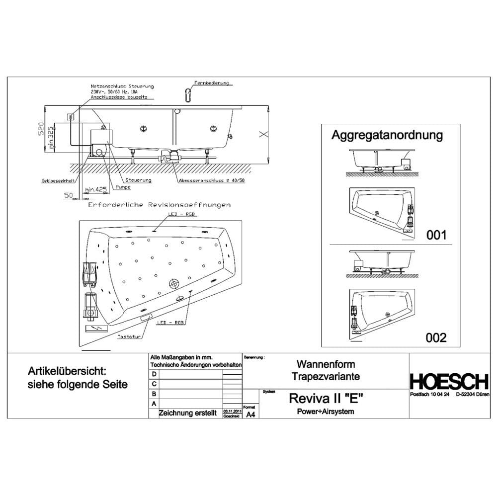 Hoesch Largo Eck-Whirlpool Reviva II 4 Whirl 21 Air 8 Rücken 2 Fußdüsen+ Farblichtwechsler rechte Ausführung