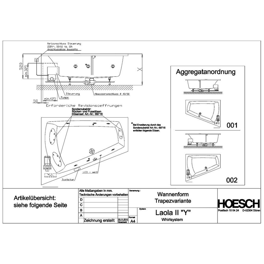 - Absaugdüse kombiniert mit der Ab- / Überlaufgarnitur HOESCH Combi