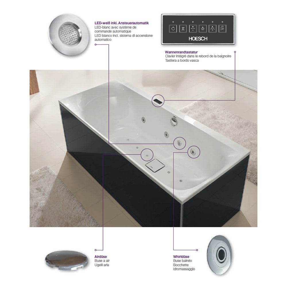 Hoesch Spectra Trapez-Whirlpool 180 x 120 cm, rechte Ausführung mit Laola II Whirl+Air und Rücken- und Fußdüsen und Combi Plus