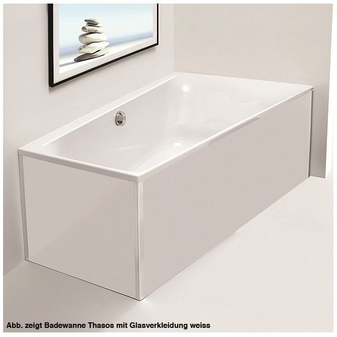 - Acrylbadewanne mit Glasverkleidung aus 8 mm Einscheiben-Sicherheitsglas in weiß